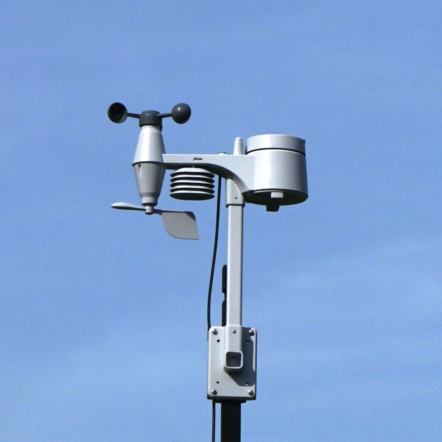 Anemometer (windsensor) meet de windsnelheid, een belangrijke parameter voor de berekening van verdamping.