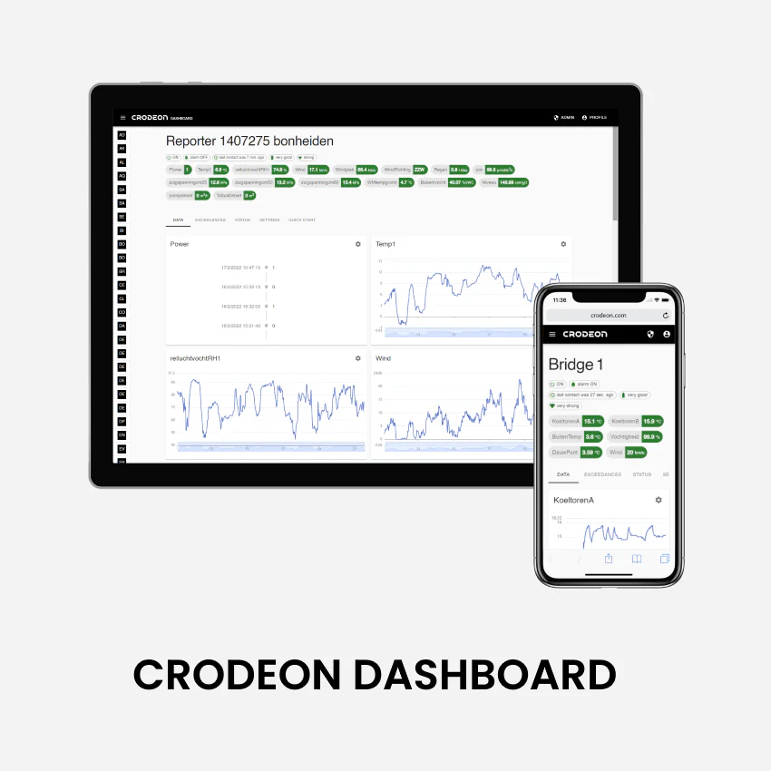 Onze verhuurset is opgebouwd rond een Crodeon Reporter met gekoppelde sensoren: